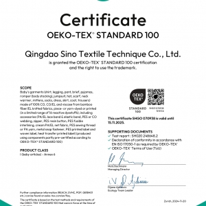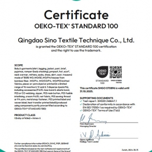 Qingdao SINO Textile Co., Ltd. was founded in 2005. We are an innovation-driven manufacturer specializing in Australian Merino wool garments for baby and active adult. Our technical base layers and outwears meet highest global standards: Ø Oeko-tex standard 100 class 1(Highest safety certification for babywear)Ø REACH (EU chemical compliance)Ø GOTS & RWS (Ethical wool production)Ø Other EU an... ...